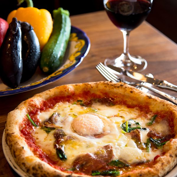 可在该店品尝到用那不勒斯石窑烤制的正宗披萨。大量使用精选食材做成的披萨又健康又饱腹。
