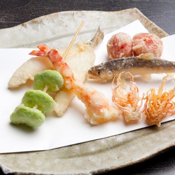 生蚝口感富有弹性,据说水分含量适度的生蚝适合做成天妇罗。店内每天都会从丰洲采购北海道和三陆等地产、当日高品质的生蚝。生蚝天妇罗是冬季特有的奢侈一品,可以同时享受其面粉外衣的酥脆口感以及生蚝本身奶油般的浓稠口感。